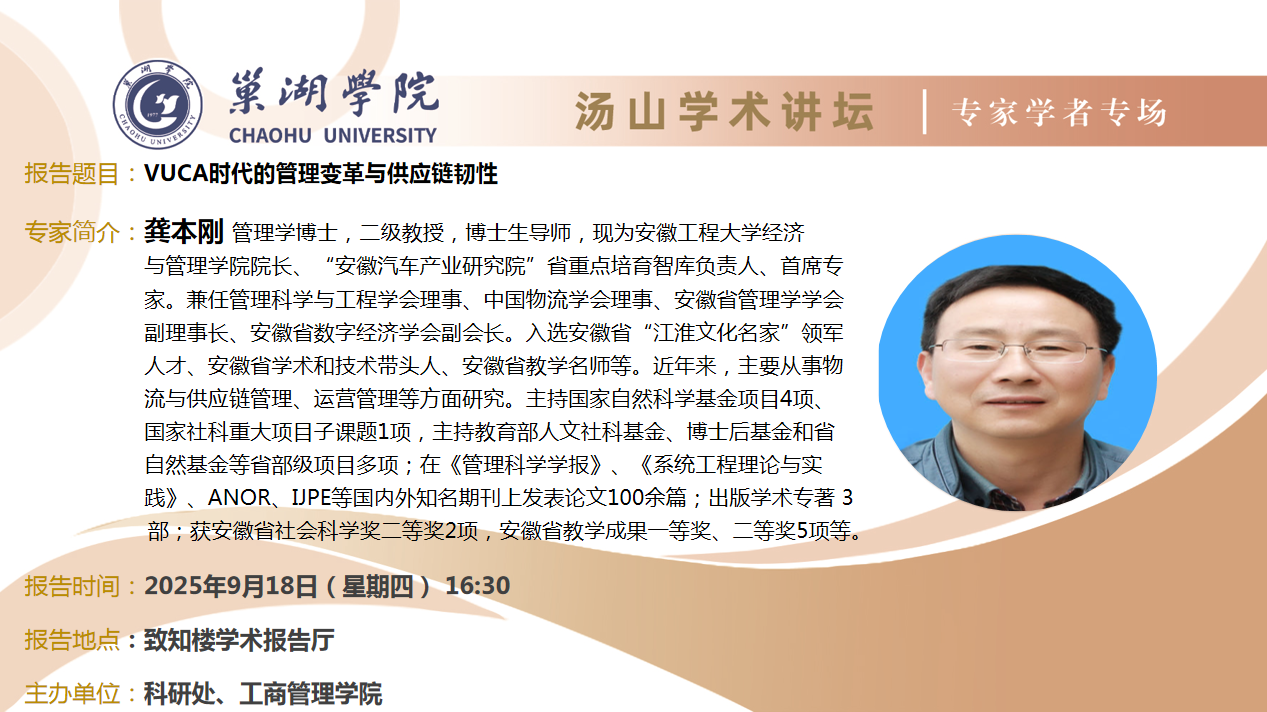 • 9月18日:安徽工程大學龔本剛教授講座